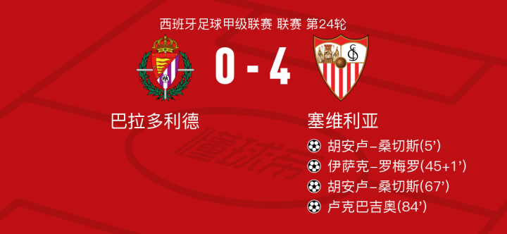 北京时间2月16日,西班牙足球甲级联赛进行第24轮的比赛,巴拉多利德在主场对阵强大的塞维利亚。比赛一开始,塞维利亚就展现出强大的攻势,第5分钟就由胡安卢-桑切斯打入了第一球,为球队取得领先。